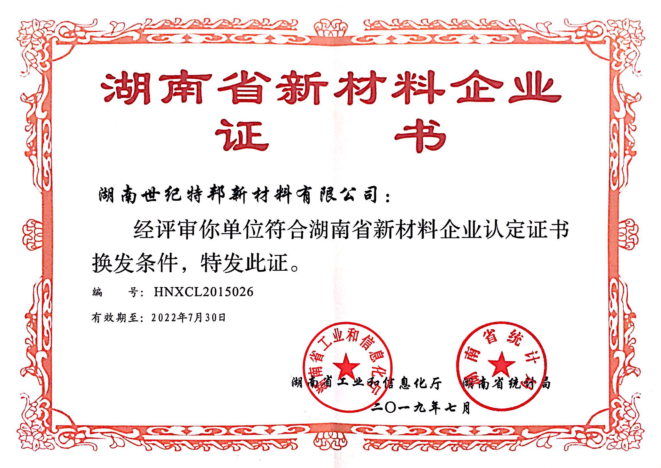 2016年,公司先后被評為“湖南省新材料企業”“科技型中小企業”等榮譽證書