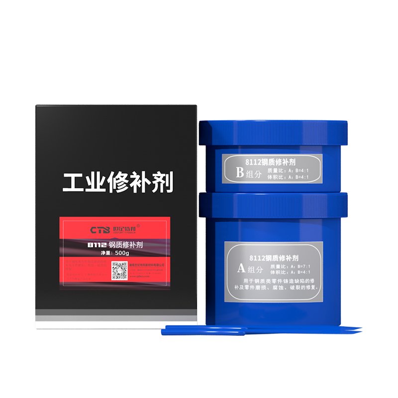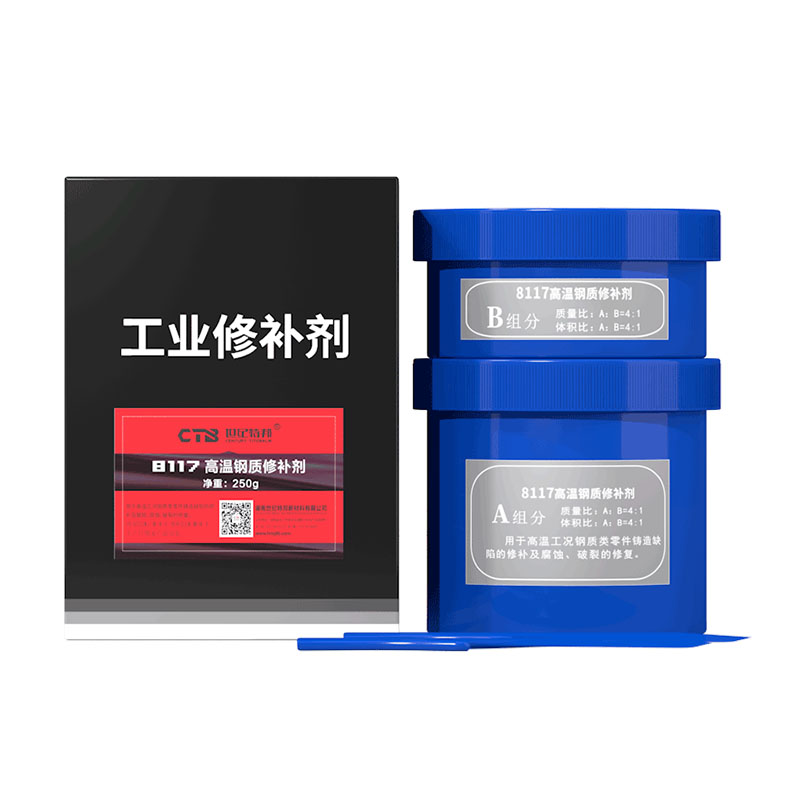 2. 雙組份,膠泥狀,鋼色,綜合機械性能好,用于高溫工況各種碳鋼、合金鋼,不銹鋼的修補。